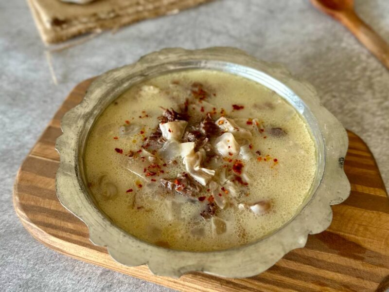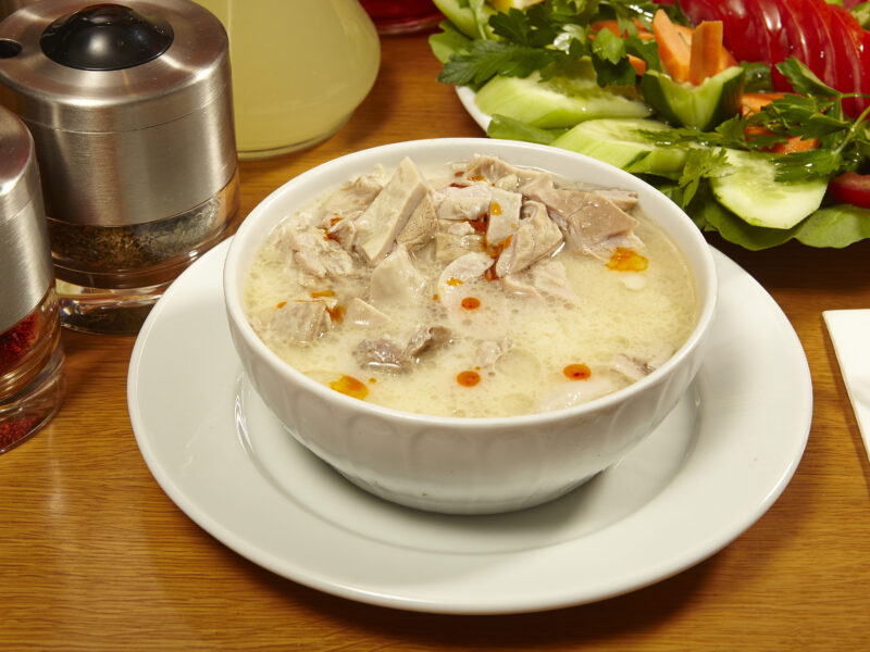 Gaziantep mutfağının ünlü çorbası. Et, pirinç, sarımsak ve acı baharatlarla hazırlanır, sabah kahvaltılarında da tercih edilir.